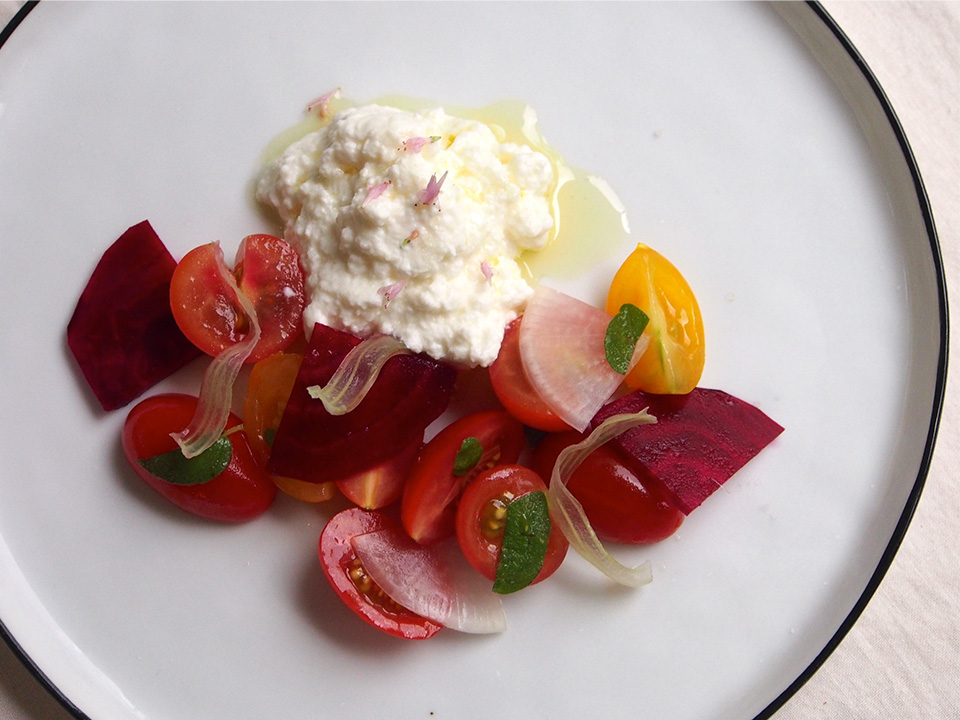 リコッタチーズ、夏野菜、果物、蜂蜜